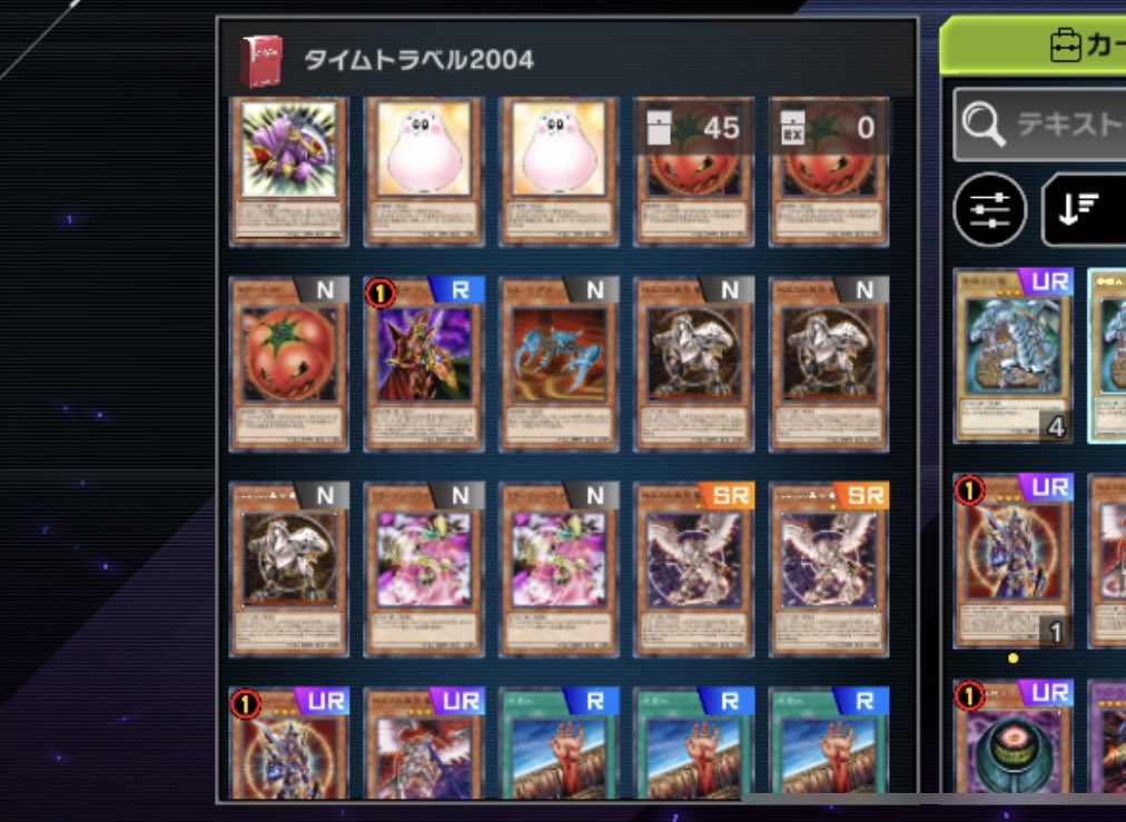 マスターデュエルの2004フェス楽しすぎてやばい!!! 結局強欲な壺を作ってしまった…。 あとこのフェスのためにカイクウ作ったらロイヤルになって笑ったw pic.twitter.com/OUOi5HC8Np