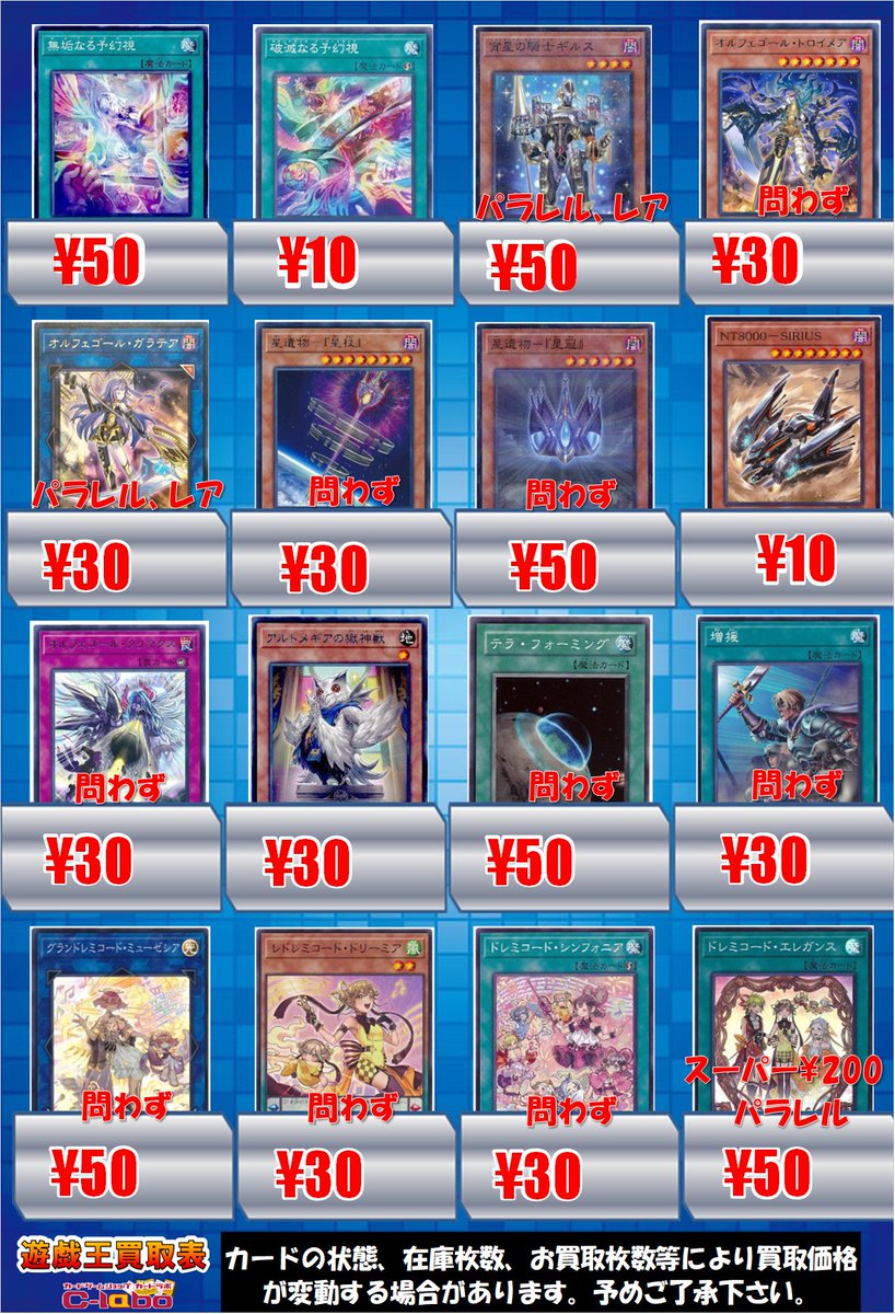 12/6① 黒魔女ディアベルスター※新規イラスト/ SE:300 絢嵐たるクローゼア/ SR:100 紅涙の魔ラクリモーサ/ SE:1200 重機貨列車デリックレーン/ SE:200 セイクリッド・カストル/ SPR:50 パイル・アームド・ドラゴン/ UR:900 妖精伝姫-カグヤ/ SE:100 星辰爪竜アルザリオン/ UR:1200 オオヒメの御巫※新規イラスト/ UPR:6500 閉ザサレシ天ノ月/ SE:3200 黒の魔導陣※新規イラスト/ UPR:2000 黒魔術の秘儀※新規イラスト/ UPR:2000 サイクロン/ SE:900 UR:700 SRルーレット/ SE:100 隣の芝刈り/ SE:800 成金ゴブリン/ SR:100 光の黄金櫃/ UL:400 マジックカード「死者蘇生」/ SE:500 マスク・チェンジ/ SE:250 マスク・チェンジ※新規イラスト/ UPR:3000 神の宣告/ N:10 シンクロ・ゾーン/ SE:150 トラップトリック/ UR:150 ↓ ↓その他の買取情報はこちら↓ ↓ fullcomp.jp/radiokaikan/ka…