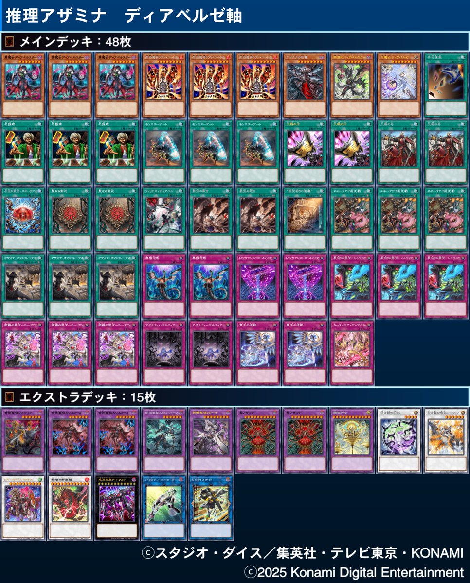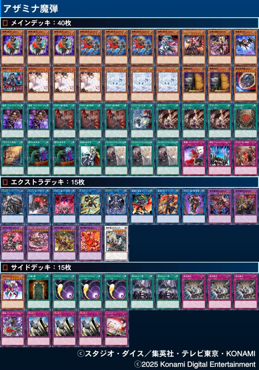 除外するG嫌すぎてアザミナ、ブリリアント抜きにした上で ドロバ嫌すぎてデモンスミスギミックを入れて ドロー誘発来たときにつっぱして詰ませるために五虹ギミックを入れて 貫通が弱くなってきたのでトイボックスを入れて 返し札としてフィリアスを積んで 完成したのが60枚白き森 pic.x.com/cQY48A1aYV