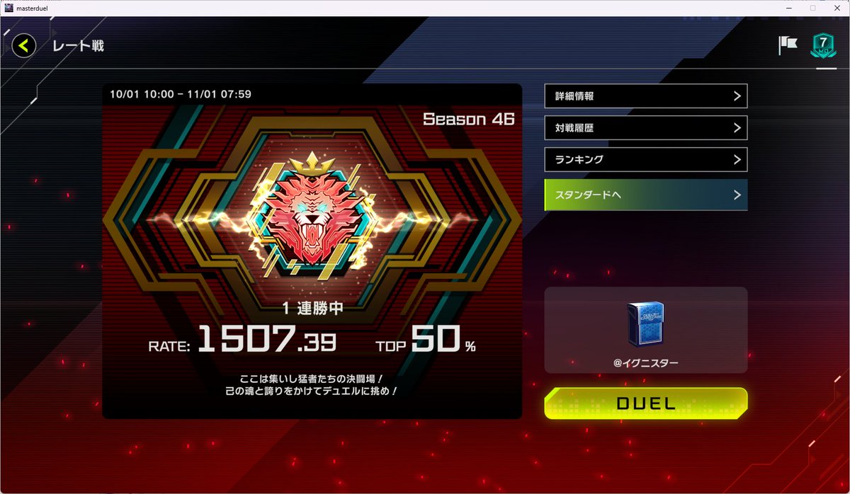 シーズン46で久々レート戦突入 使用デッキは@イグニスター どのデッキよりやっぱイグニスターが好き #遊戯王マスターデュエル #イグニスター pic.x.com/VnLDeWTqVD
