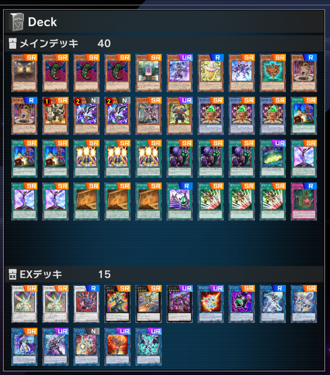 @yakan002 オルフェゴール自体デッキ内の各カードが1枚ずつで動けるテーマなので、デッキスロットがめちゃ空くんですよね ニビルピンはGやフワロスを通した時、相手が止まらずワンキルを狙ってきた際にそれを阻止する用で1枚仕込んでます