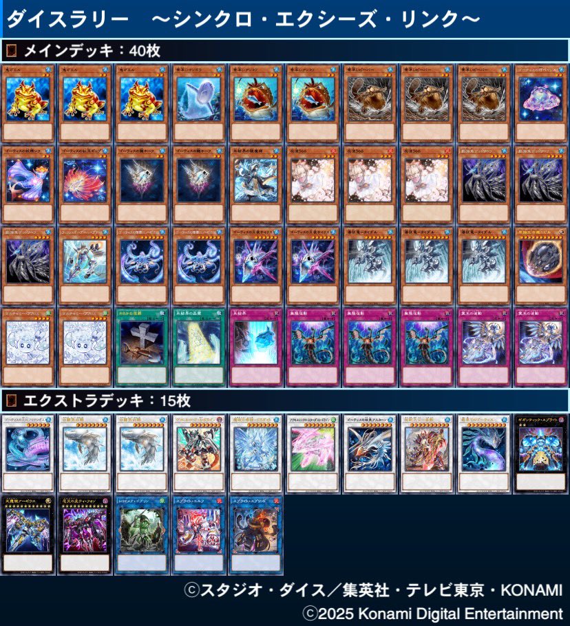 ダイスラリー第二回、規制のかけ方が緩めでハイパワーなイベントになりそうね レンタルデッキは組む気ないけど使ってみたかったデッキが揃ってるから使ってみようかな、使いやすそうだし 画面いっぱいのマジシャンガールが見たいぜ