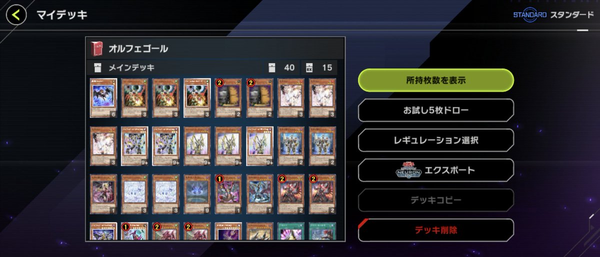 @yakan002 オルフェゴール自体デッキ内の各カードが1枚ずつで動けるテーマなので、デッキスロットがめちゃ空くんですよね ニビルピンはGやフワロスを通した時、相手が止まらずワンキルを狙ってきた際にそれを阻止する用で1枚仕込んでます