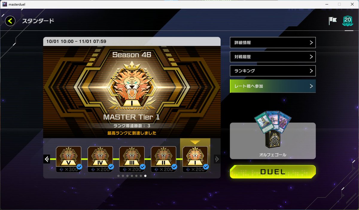 ランクマSeason46 マスター1到達(デモンスミスオルフェゴール) 誘発貫通力が高くて、安定して妨害を敷けた! ドロールやマルチャミーと相性良いから、先攻後攻強くて楽しい pic.x.com/etTJAG6lpz