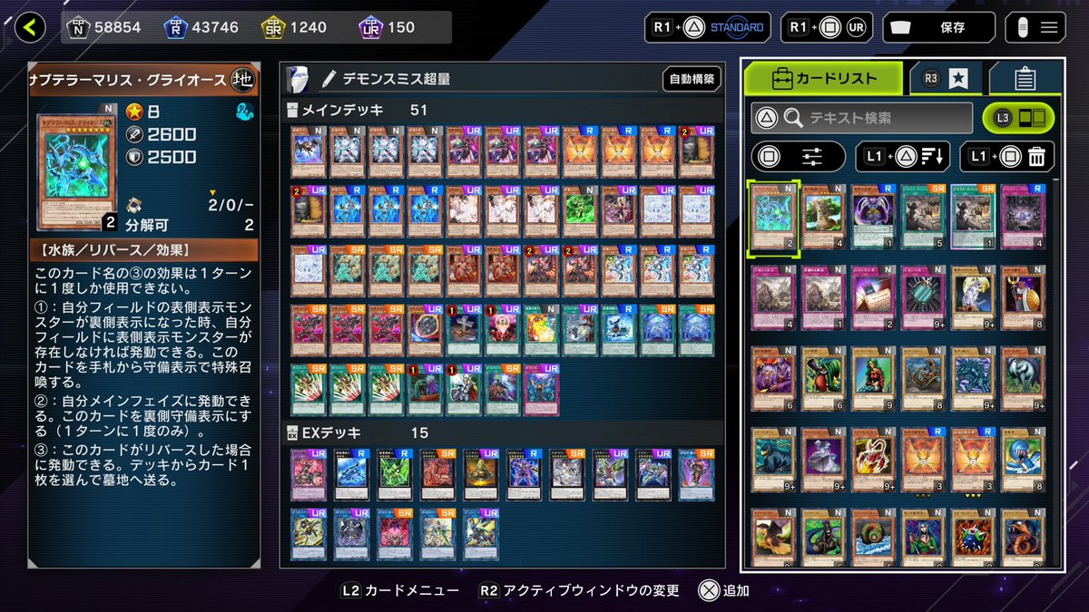 タナカZガンダム@tanakaZgundamマスター3で7連続裏引いて蹴落とされたところでギブアップした、デモンスミス超量。 超量1枚初動+ルリー出せる何かから始めて展開中に3ドローできるブラスターマグナを組み込んだ。 尖らせ過ぎて後攻が余りにもしんどかった。 #遊戯王マスターデュエル pic.x.com/mNRQm3iJAT