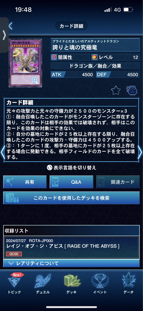 よーすけ@yousuke1455@tenkasi1217 気炎は欲しいので枠がかなりカツカツですよね、天威で1枠作るとしたらシンクロ体でどれか大事なカードを削る必要がありそう 黒エクがフリチェで効果除外できるので、割と真面目に深淵の相剣龍落としが強いのでは…と思っていますw