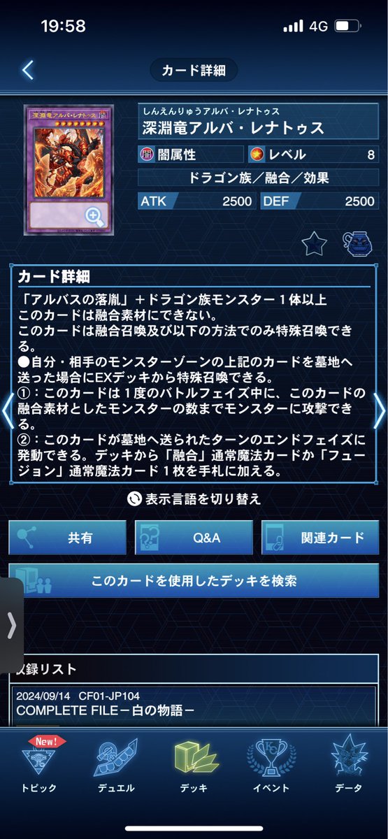 爆炎を纏いし漆黒の田中@nanorimu0諸々のケアや最終盤面考えたら烙印融合より白アルバス初動のが強いと思うんだが、白アルバスを手に持ってくる手段が思ったより少なくて結局烙印融合で動かないといけない事になりそう