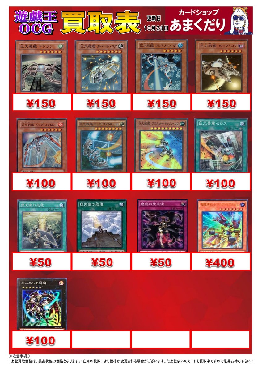 オタロードで遊戯王カード売るならあまくだり! ツリーに他の買取表も掲載中