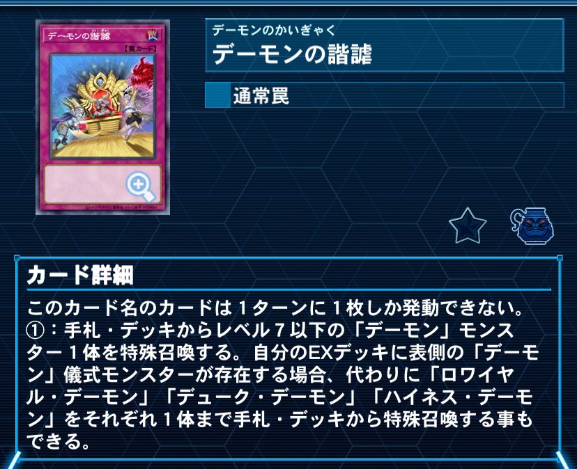 ぎんら@ginra_1「デーモンの簒奪」いいねー! デーモンの簒奪ef悪魔の技セット 悪魔の技ef1破壊+トリックデーモン墓地 トリックデーモンefデーモンの簒奪サーチ
