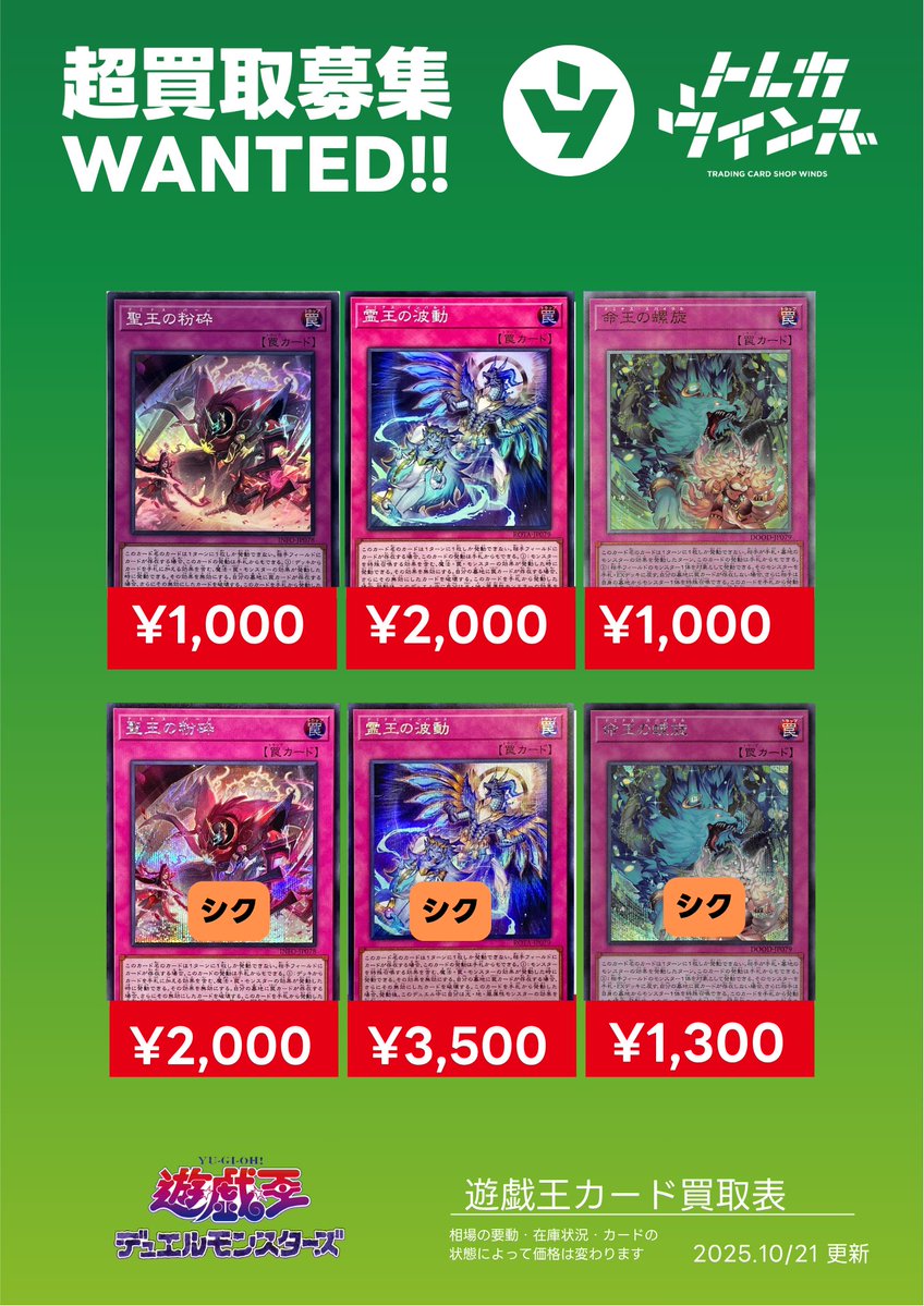 #ウィンズ遊戯王 ドミナス系まだまだ募集してます スパイラルは買取UPしました