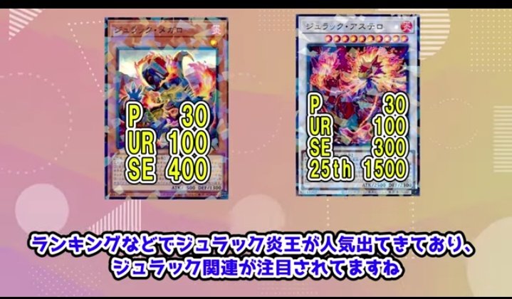 ジュラック炎王か、聴く限りだと普通に面白そうだしちょっと炎王リビルド視野だな 必要なのってメガロ、アステロ、メテオの3種だけだしそんなに枚数いるってわけでもなさそうだし