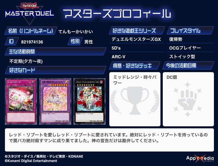 遊戯王履歴書作りました 髪の毛レッドリブート色のYP