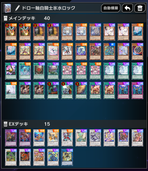 K.Iris*/ケイリス@dantekirisてことでドロー軸の白騎士氷水ロックと、カード枚数とEX見直したデッキ用意してみた! あとは何を意識するかで微調整していきたいところ。赤き竜採用型も面白かったし用意しておこうかな pic.x.com/SYahxP19Y4