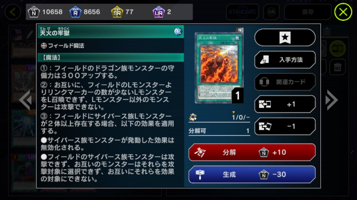 エンシェントフェアリーのロイヤル来たけど正直現状要らないから砕こうか悩んでる……とはいえ汎用性考えるとEXに居たら嬉しいSモンスターでもあるから悩み……でもクラフトポイント30Pか……ラクリモーサ作れるな……