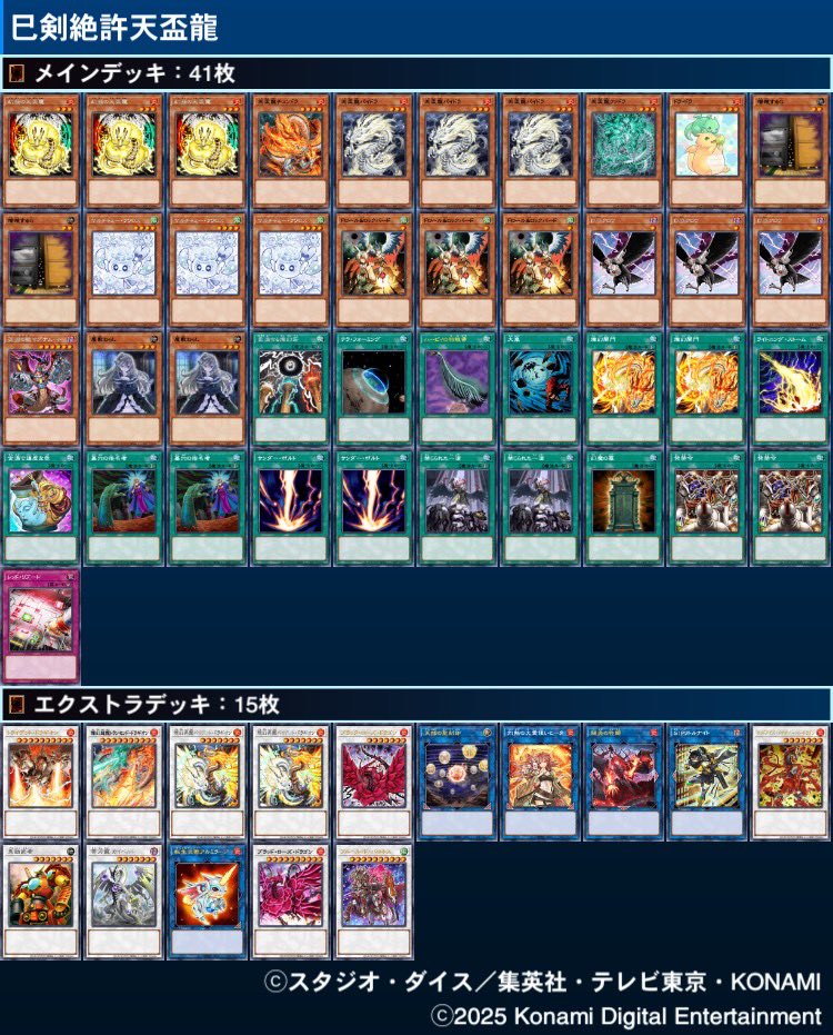 ランキングデュエル(1デュエル戦) 天盃龍使用 後 剣闘獣○ 後 ヤミー○ 後 原石リシド○ 後 巳剣ライゼオル○ 初めて全勝優勝しました!! 改めて天盃龍のポテンシャルの高さと普通ならサイドから入れるリブートや墓穴をメイン投入した事の利点が活きたのと何より捲り札の引きが強かったです。 pic.x.com/s2QrfVVyQa