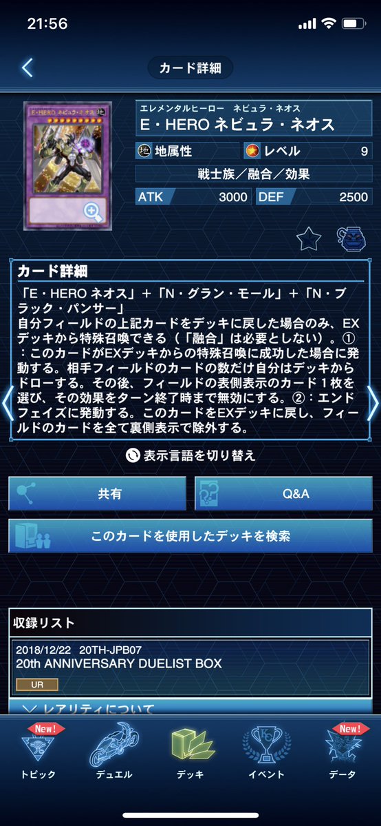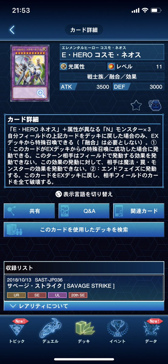 想龍@so_ryuミラクルエクスクルーダー考えてたけど、普通のHEROに N入れてまで採用するのはきつい。 マスターデュエルでたまにやってる60枚HEROとかならワンチャンあるかも、くらい。 となるとネオス軸で採用になるんだけど、ハンデスするかコスモネオスするかどっち? って感じで、どっちにしろ害悪では???