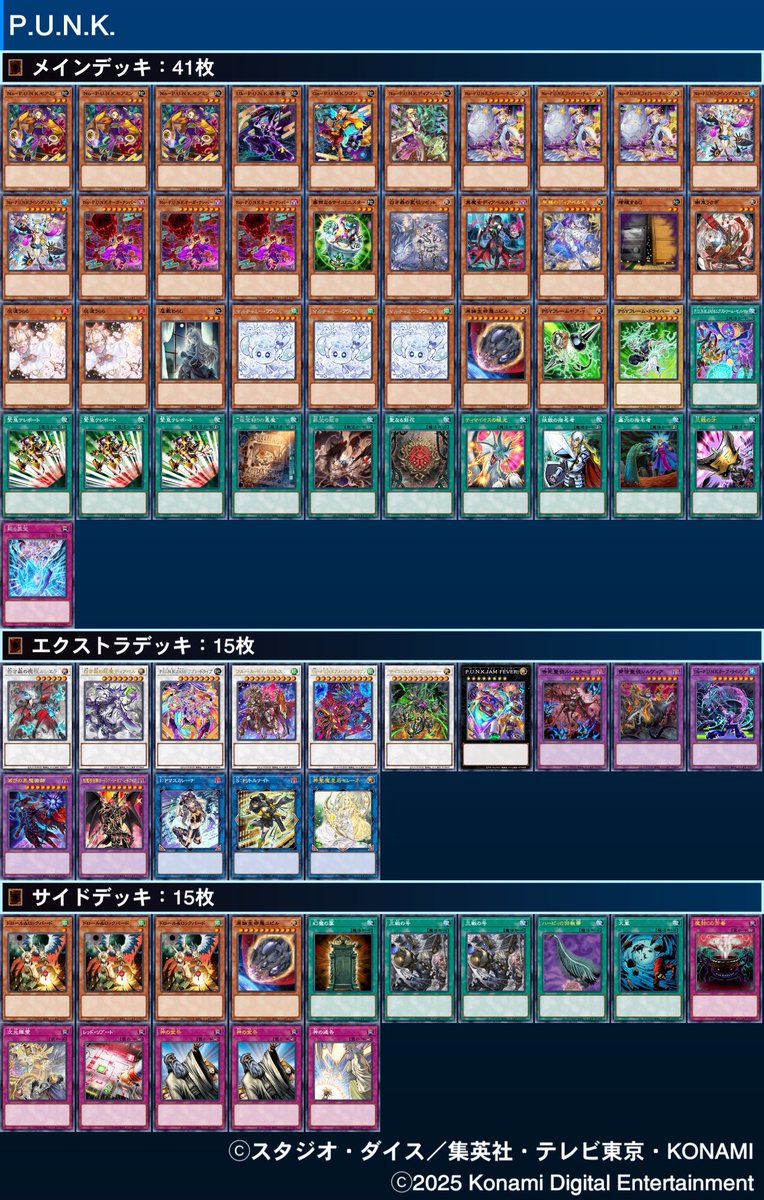 (観月)@kan_midu第1部のルムマにP.U.N.K.(+サイキック)デッキで参加してました 戦績は6勝3敗 プロシージャー君が初動兼融合サイキックにも繋がるのがエラい その分ライフ使いが荒くなるけど #邪道決闘ルムマ pic.x.com/ez6tLK1qSc