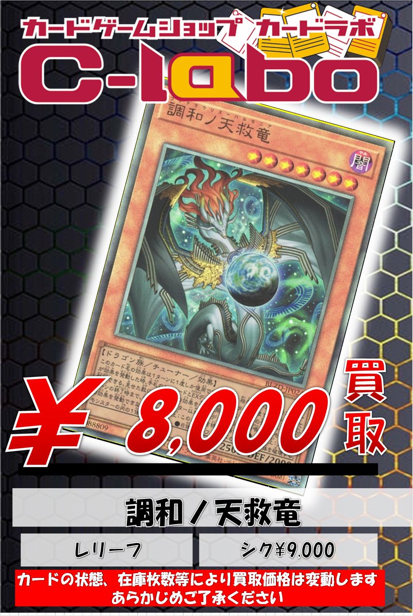 カードラボ秋葉原ラジオ会館本店(9階フロア)@akihabara_labo【遊戯王買取情報】 調和ノ天救竜の買取価格を更新致しました