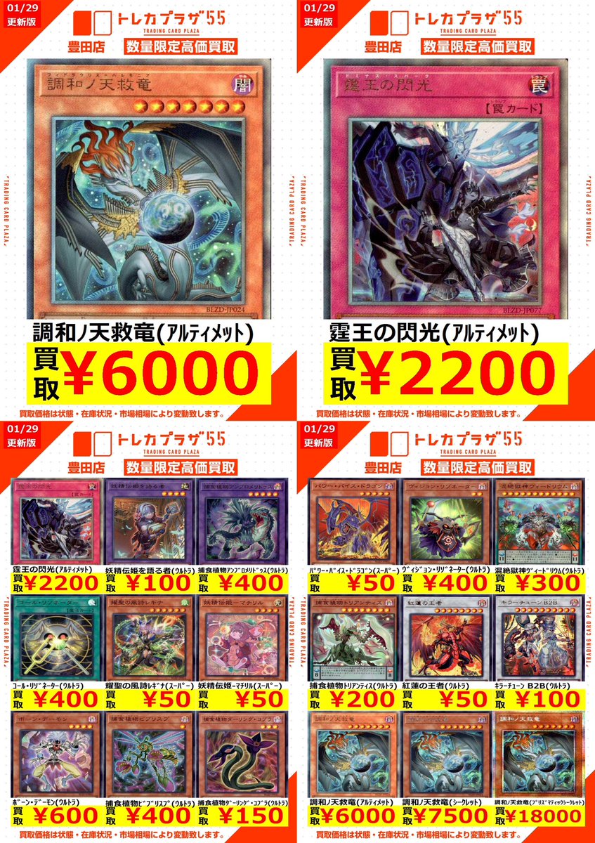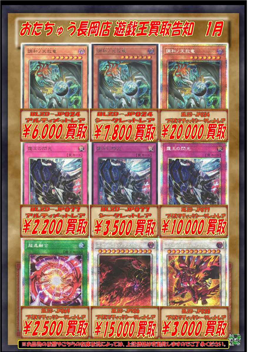 おたちゅう長岡店カード部@ymtrngok_gc【遊戯王 買取情報】 遊戯王買取告知を更新しました!! 話題の「調和ノ天救竜」ぜひ当店にお持ちください!!! その他のカードも買取お待ちしております!! #遊戯王 #遊戯王OCG pic.x.com/vyeDtQP5gD
