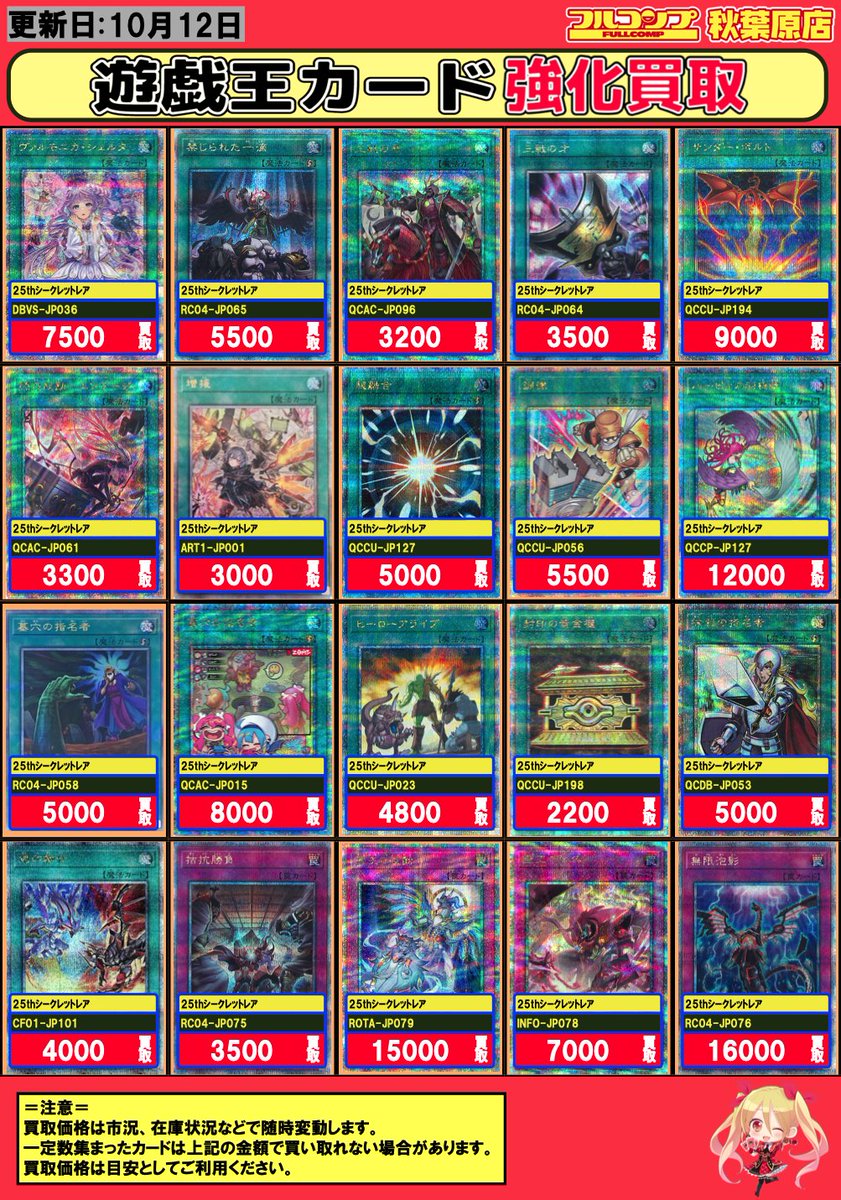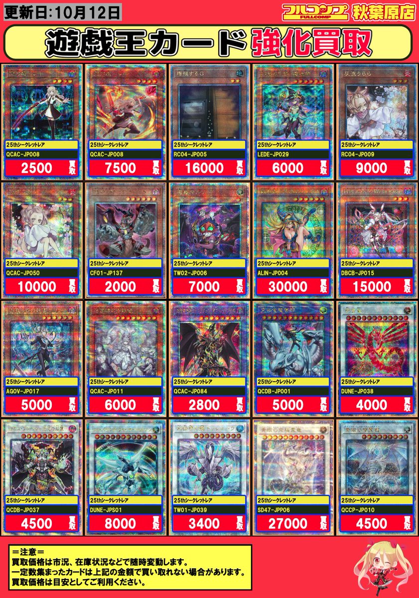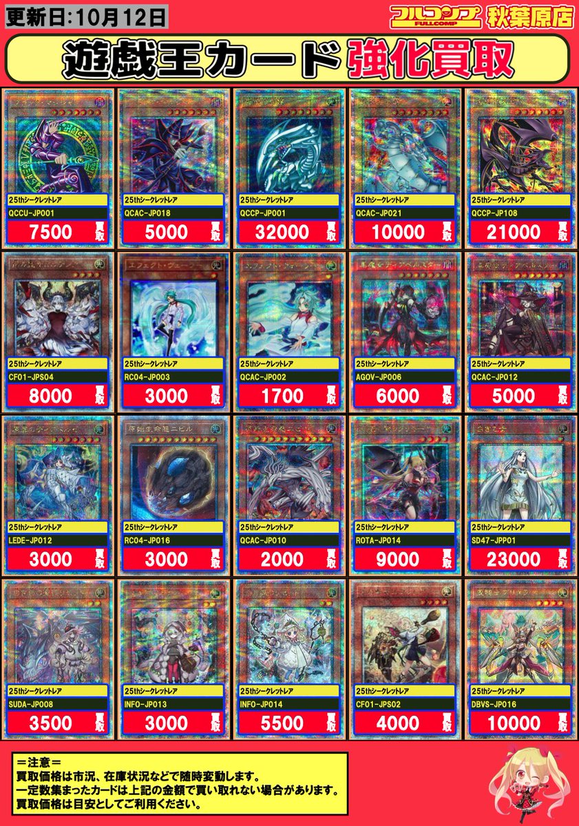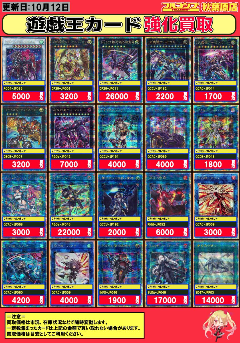 【#遊戯王 買取情報】 10/12 ブラック・マジシャン/ 25th:7500 ブラック・マジシャン※新規イラスト/ 25th:5000 青眼の白龍/ 25th:32000 青眼の白龍※新規イラスト/ 25th:10000 真紅眼の黒竜※新規イラスト/ 25th:21000 赫の聖女カルテシア※新規イラスト/ 25th:8000 エフェクト・ヴェーラー/ 25th:3000 エフェクト・ヴェーラー※新規イラスト/ 25th:1700 黒魔女ディアベルスター/ 25th:6000 黒魔女ディアベルスター※新規イラスト/ 25th:5000 原罪のディアベルゼ/ 25th:3000 原始生命態ニビル/ 25th:3000 原始生命態ニビル※新規イラスト/ 25th:2000 紅涙の魔ラクリモーサ/ 25th:9000 白き乙女/ 25th:23000 白き森の聖徒リゼット/ 25th:3500 白き森のアステーリャ/ 25th:3000 白き森のリゼット/ 25th:5500 白の聖女エクレシア※新規イラスト/ 25th:4000 重騎士プリメラ/ 25th:10000 閃刀姫-レイ/ 25th:2500 閃刀姫-レイ※新規イラスト/ 25th:7500 増殖するG/ 25th:16000 幻惑の見習い魔術師/ 25th:6000 灰流うらら/ 25th:9000 灰流うらら※新規イラスト/ 25th:10000 深淵の獣マグナムート/ 25th:2000 魔轟神ルリー/ 25th:7000 魔術師の弟子-ブラック・マジシャン・ガール/ 25th:30000 M∀LICE<P>WhiteRabbit/ 25th:15000 白銀の城の執事アリアス/ 25th:5000 迷宮城の白銀姫※新規イラスト/ 25th:6000 超魔導竜騎士-ドラグーン・オブ・レッドアイズ/ 25th:2800 究極竜魔導師/ 25th:5000 赤き竜/ 25th:4000 カオス・アンヘル-混沌の双翼-/ 25th:4500 シューティング・クェーサー・ドラゴン/ 25th:8000 氷結界の龍トリシューラ/ 25th:3400 青眼の究極霊竜/ 25th:27000 青眼の精霊龍/ 25th:4500 フルール・ド・バロネス/ 25th:5000 神影金龍ドラッグルクシオン/ 25th:3200 No.107銀河眼の時空竜※新規イラスト/ 25th:26000 天霆號アーゼウス/ 25th:2200 天霆號アーゼウス※新規イラスト/ 25th:1700 ライゼオル・デッドネーダー/ 25th:3200 厄災の星ティ・フォン/ 25th:7000 I:Pマスカレーナ/ 25th:4000 I:Pマスカレーナ※新規イラスト/ 25th:4000 アクセスコード・トーカー/ 25th:1800 Evil★Twinリィラ※新規イラスト/ 25th:3000 S:Pリトルナイト/ 25th:22000 閉ザサレシ世界ノ冥神/ 25th:2000 賜炎の咎姫/ 25th:6000 閃刀姫-カガリ※新規イラスト/ 25th:3000 閃刀姫-シズク※新規イラスト/ 25th:4200 閃刀姫-ハヤテ※新規イラスト/ 25th:4000 刻まれし魔の鎮魂棺/ 25th:1900 光なき影ア=バオ・ア・クゥー/ 25th:17000 青き眼の祈り/ 25th:14000 ヴァルモニカ・シェルタ/ 25th:7500 禁じられた一滴/ 25th:5500 三戦の号/ 25th:3200 三戦の才/ 25th:3500 サンダー・ボルト※新規イラスト/ 25th:9000 閃刀起動-エンゲージ※新規イラスト/ 25th:3300 増援/ ART1/:3000 超融合/ 25th:5000 調律※新規イラスト/ 25th:5500 ハーピィの羽根帚※新規イラスト/ 25th:12000 墓穴の指名者/ 25th:5000 墓穴の指名者※新規イラスト/ 25th:8000 ヒーローアライブ/ 25th:4800 封印の黄金櫃/ 25th:2200 抹殺の指名者/ 25th:5000 烙印融合/ 25th:4000 拮抗勝負/ 25th:3500 霊王の波動/ 25th:15000 聖王の粉砕/ 25th:7000 無限泡影/ 25th:16000 #フルコンプ秋葉原店