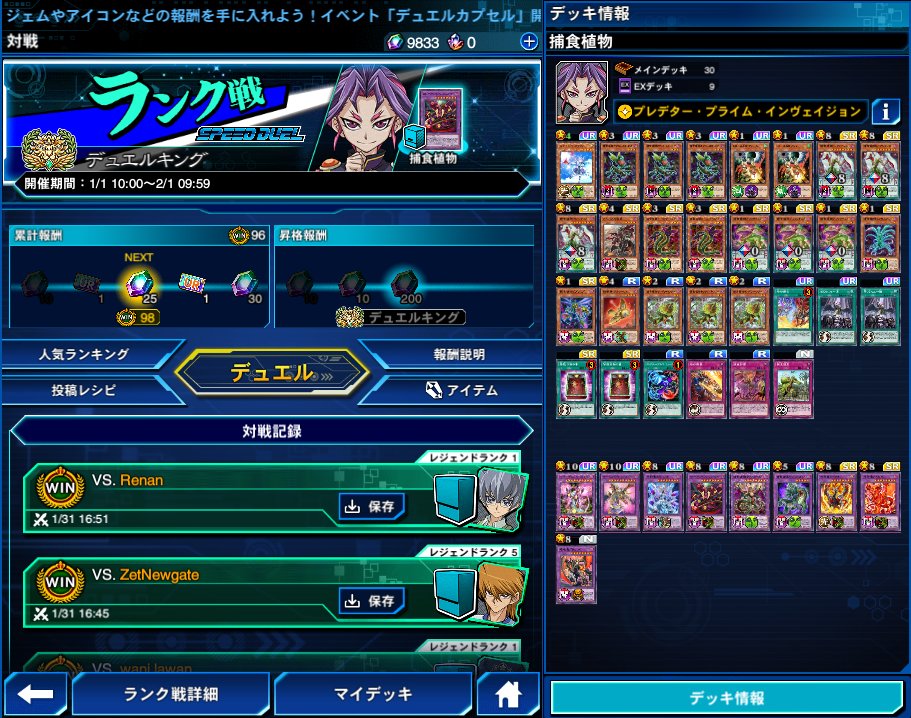 ふないる@funairu41016デュエルリンクス キング【烙印型捕食植物】 レジェンド3まで遊矢シリーズルーレット 他の3人と比べて先攻の安心感が特に桁違いであった pic.x.com/KE0eXWJtCN