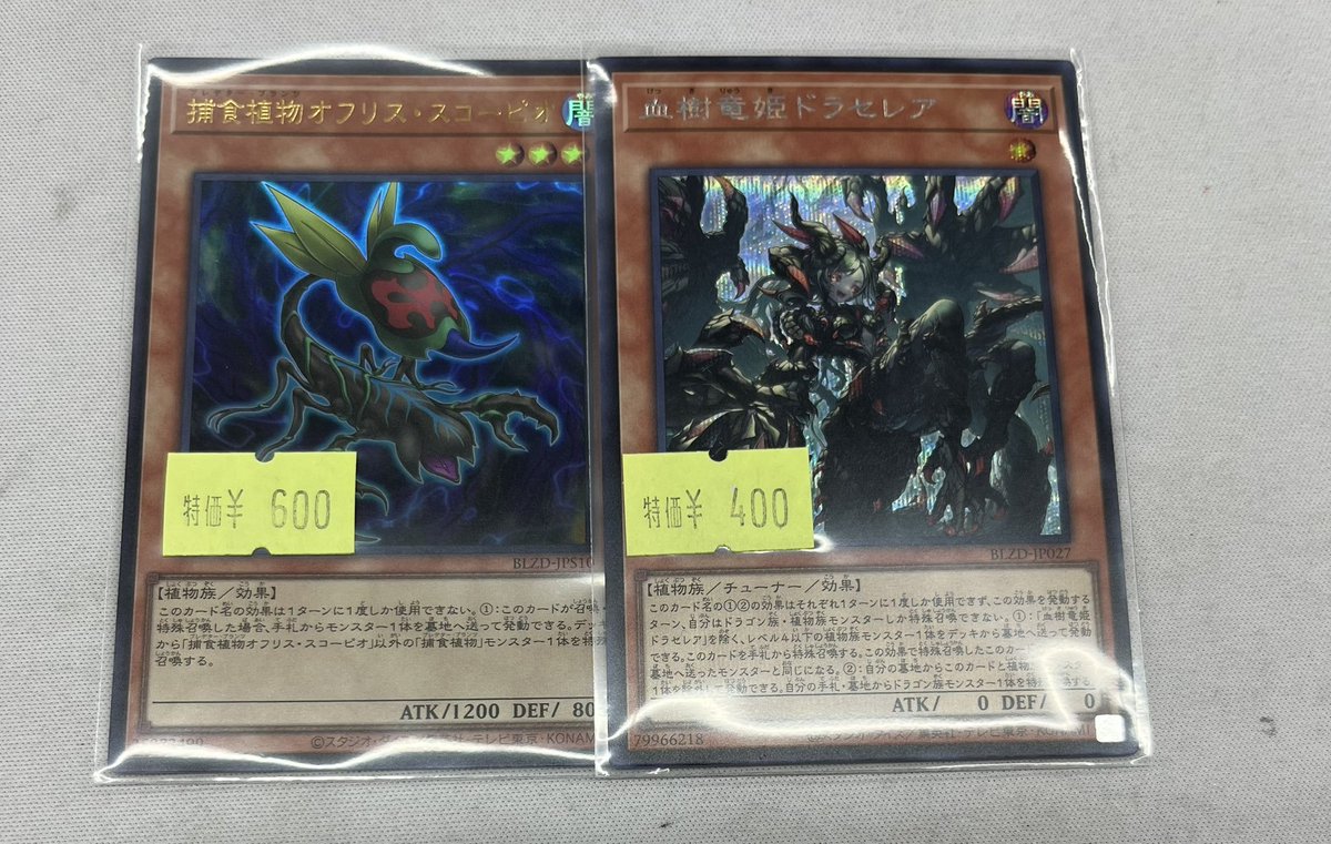 『捕食植物オフリススコーピオ』ウルトラ 『血樹竜姫ドラセレア』シク 『妖精伝姫ラチカ』 『レッドデーモンズドラゴン』シク お求めの方はぜひ