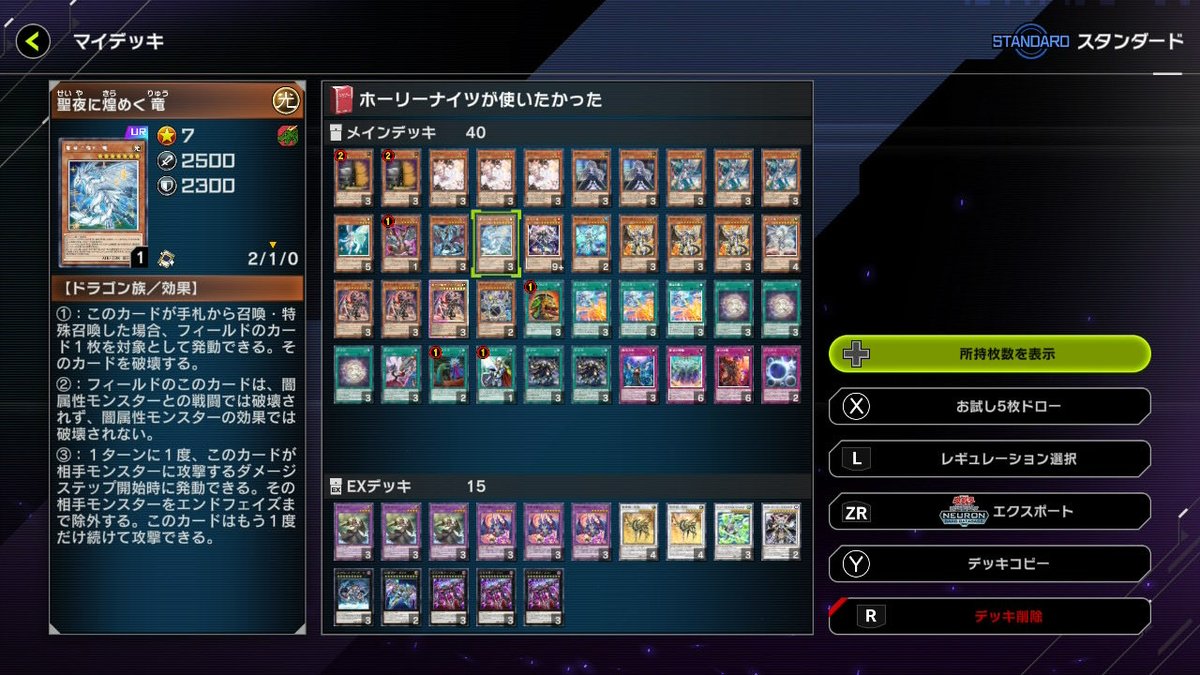 波導方程式@larudoXホーリーナイツというか聖夜に煌めく竜が使いたかったデッキ リジェネシスとビーステッドの力を大いに借りたおかげでホーリーナイツ関係のカードは9枚だけです。これはホーリーナイツデッキというのでしょうか。 EXはほとんど壺のコストです。 pic.x.com/e9f7rB69r8