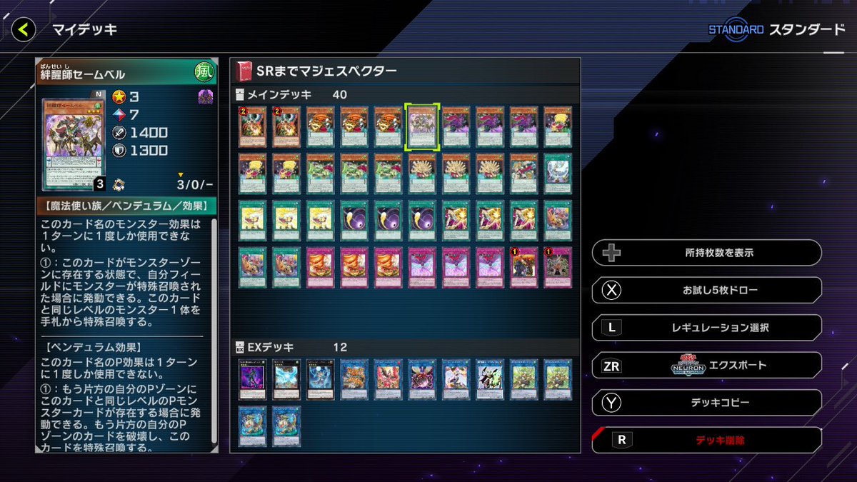 たってぃ@tatthi01SRまでフェスは貧者の味方マジェスペクターで(まだ未完成。EXをどう埋めよう)。 SR最強の誘発ドロバが初動になりえるのが優秀。ビーステッドとかは使えないが、まあ良いでしょう。 というか、セームベルちゃん使いたいんだわ。 #遊戯王マスターデュエル pic.x.com/gER1peBEkA