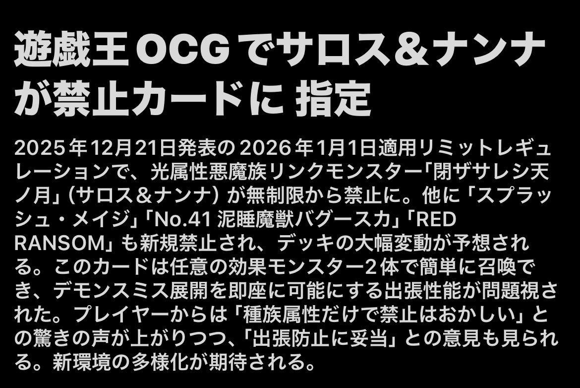 なろう・カクヨム投稿中@hohihohiningyou再録して欲しいけど、これ以上遊戯王カード値崩れさせてショップ様大丈夫かな感はある ただでさえサロスナンナ禁止なのに x.com/kenkenhayate07…