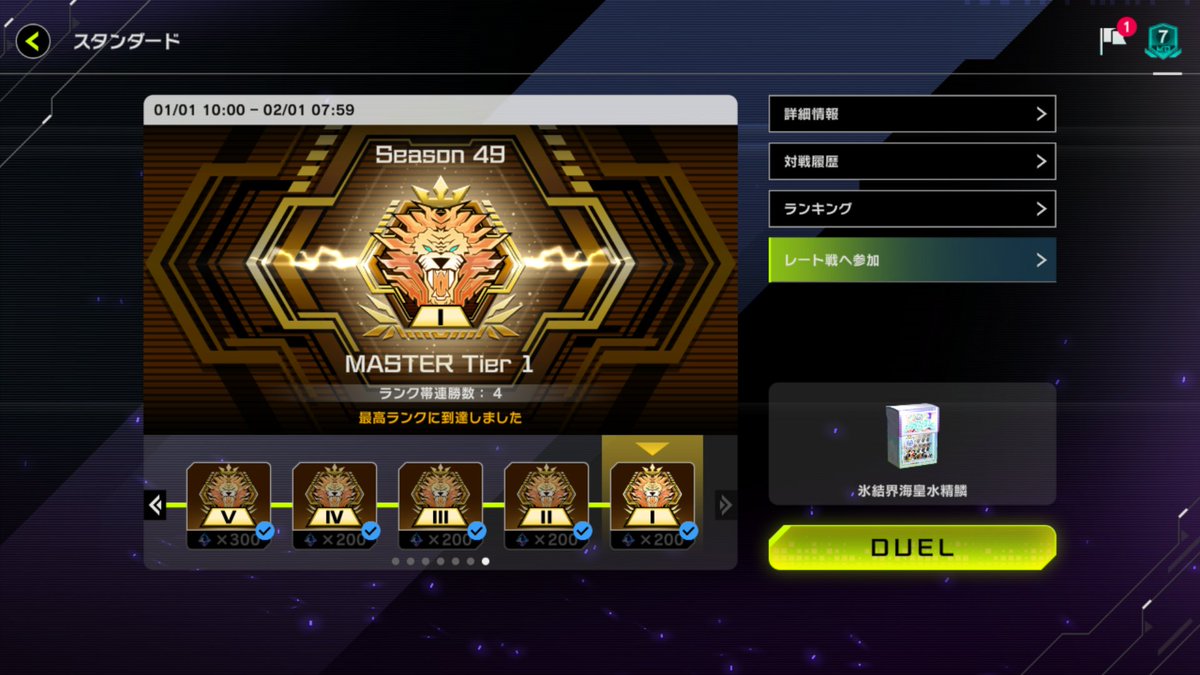 えいきう@EIKIU_ypリリース当初ぶりにマスターデュエルやりたくなって、なんとか海皇水精鱗でマスター到着! 来月は海皇でマスター1を目標にもっとやる予定 結界像が禁止になる前に… #遊戯王 #遊戯王マスターデュエル #海皇水精鱗 #YuGiOh pic.x.com/trPLFY9ks9