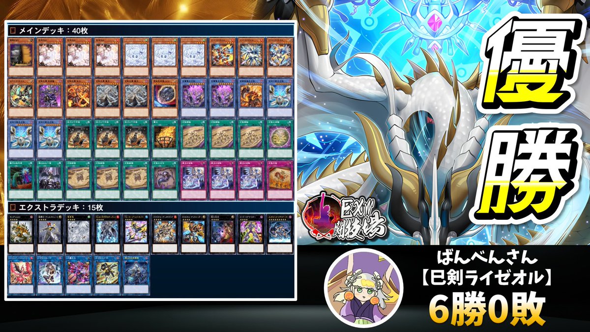 優勝 6-0 ばんべん【巳剣ライゼオル】@banbenduel13 UBD【ドラテ烙印】@unblockdragon