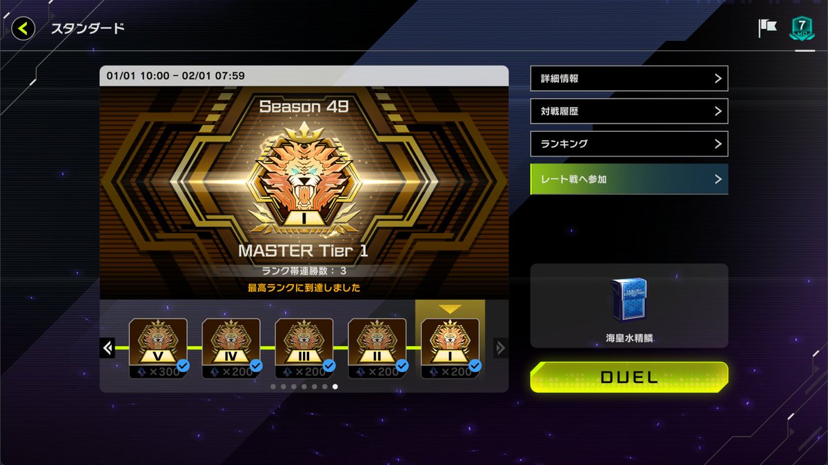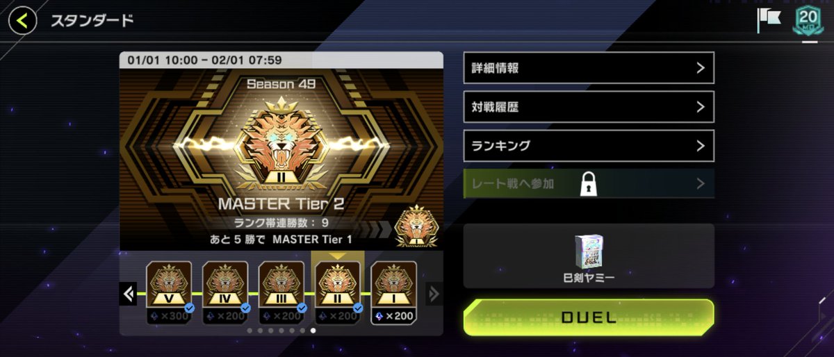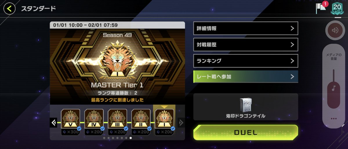 ラミぽん@0rei1WbtHdccfQtマスターデュエル、駆け込みでMaster1まで昇格。 巳剣ヤミーと烙印ドラゴンテイルを使い分けてた。特に巳剣ヤミーは9連勝とか5連勝とかポンポン出来てパワーを感じました。 pic.x.com/DN79evEPNP