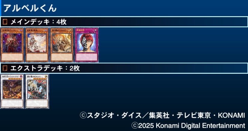 はいだ@Highda_58ヨスガcs3人チーム ヤミー 先◯◯ 巳剣K9 後ロス◯ 白き森巳剣 後◯◯ 絢嵐 後◯◯ 不戦勝 マギストスドラテで4-0でした 新規アルバスめっちゃ強かったです 120人居たから色んな人に会えて良かった 組んでくれたラムクオ ユウぴょんさん、主催のからふるさん、たすくさんありがとうございました!! pic.x.com/pLIWKCdy90