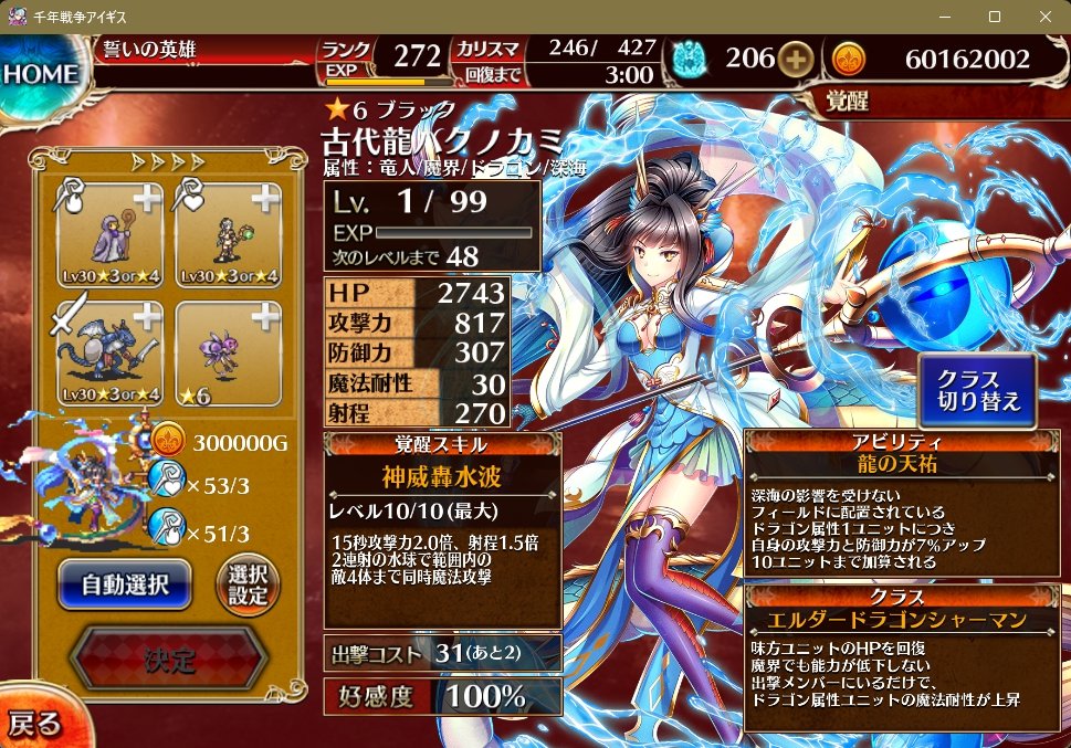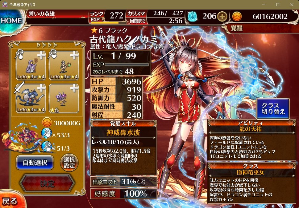 特盛半ライス@6r4Qg@MyBrandNew1126 ハクノカミ様、確かお迎えして1覚まで…通常回復、スキルで攻撃はいいですねー。 第二覚醒、射程はエルダー、脳筋王子的には極神竜。ぐぬぬ悩ましいw pic.x.com/iXySvaaXFt