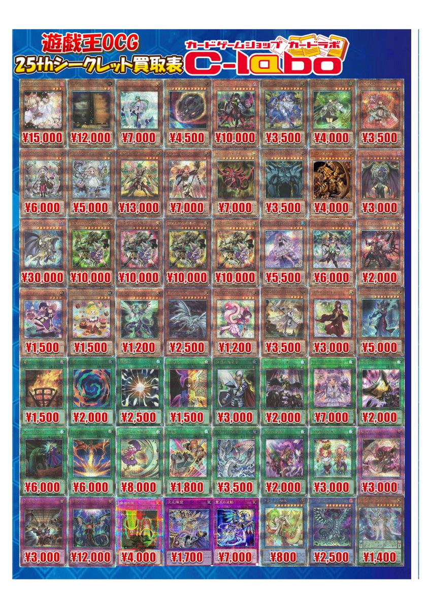 カードラボ天王寺店@tennoji_labo【遊戯王買取情報】 25thレアの買取表です!