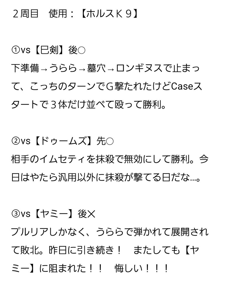 @kindhindデュエリストフェスティバル結果①。【ホルスK9】で2連続◯◯✕だったので、積極的にプレマを狙うことを諦めた。頭使うのも楽しいけれど、さすがに疲れた! pic.x.com/Tu67JRnOk0