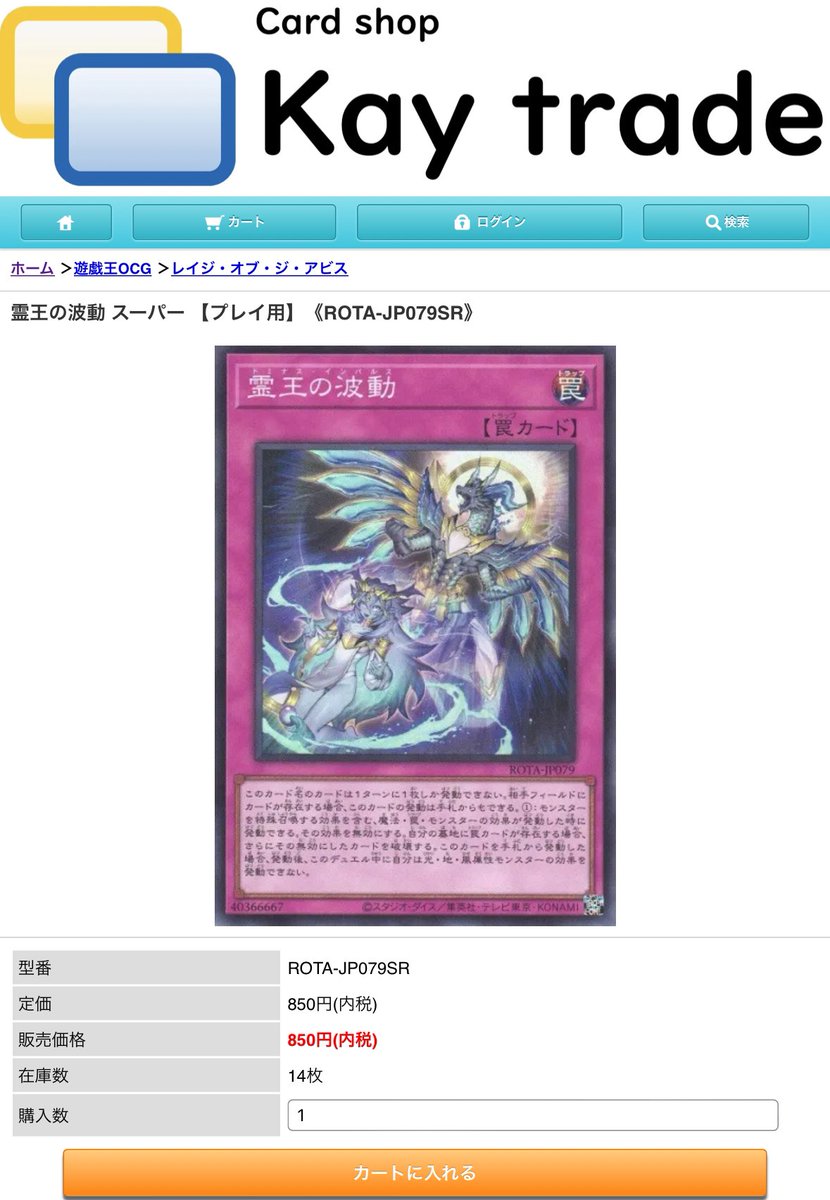 ケイトレード@kay_tradeレイジ・オブ・ジ・アビスのシングルカード販売の価格について改定いたしました 紅涙の魔ラクリモーサ QCSE:18,850円 紅涙の魔ラクリモーサ SR:700円 水霊媒師エリア QCSE:9,980円 霊王の波動 SR:850円 その他、ノーマルは15円〜、字レアは40円〜販売中でございます kay-trade.shop-pro.jp/?mode=cate&cbi… pic.twitter.com/L4Y8StWDjn