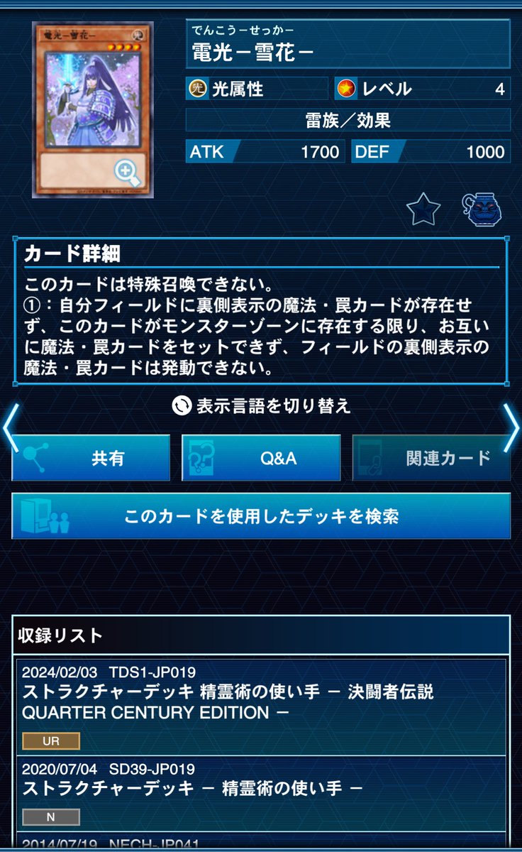 電光-雪花- | カード詳細 | 遊戯王ニューロン(オフィシャルカードゲーム カードデータベース) こいつー db.yugioh-card.com/yugiohdb/card_…