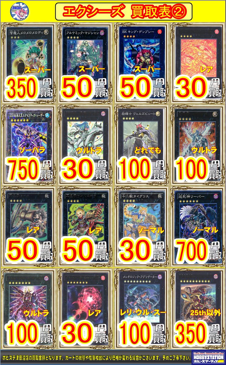 ホビーステーション津田沼店@HBSTtsudanuma【#遊戯王 買取情報!!!②】 K9-17号 “Ripper”…¥400! K9-EX “Werewolf”…¥200! DDD怒涛大王エグゼクティブ・シーザー(ノーパラ)…¥750! 終戒超獸-ヴァルドラス(25th以外)…¥350! No.60 刻不知のデュガレス…¥250~300! 鉄獣戦線フェリジット(ウル・スー)、シュライグ(ウル)…¥300! pic.x.com/0KFYw1hvvQ