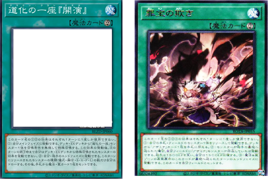 アイドル@doru_ai「道化の一座『開演』」は「罪宝の欺き」と相性よさそうだよね。手札か場にある儀式、融合、シンクロなどを自由にリリースできる。 「ディアベルスター → 原罪宝-スネークアイ」からレベル1用意できるから「リンクリボー」に変換して毎ターンリリースとかもできる pic.x.com/myNN7nB4DV