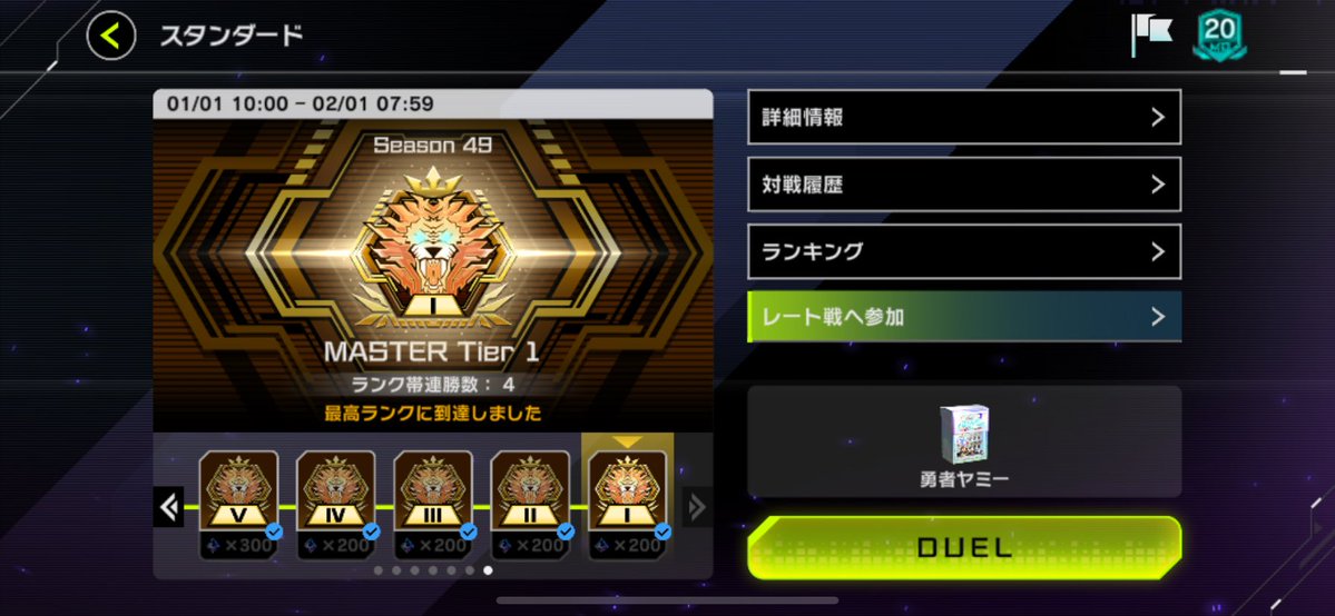 tonopi@MD@tonopiYUGIOHseason49 マスター1到達しました 勇者ヤミー使いました アラメシアのお陰でフワロスが多少何とかなるのと、カプシーへのうららパージを旅路で隠せるのが良かったです ミツルギキツすぎたのでしばらく使いません pic.x.com/vJiDUKsHfc