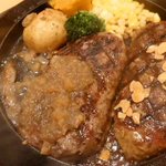 】@V56169542爆弾ハンバーグ食べてきたよ~ 450gは結構ボリューミーでした! withガーリックライスでヤミー!