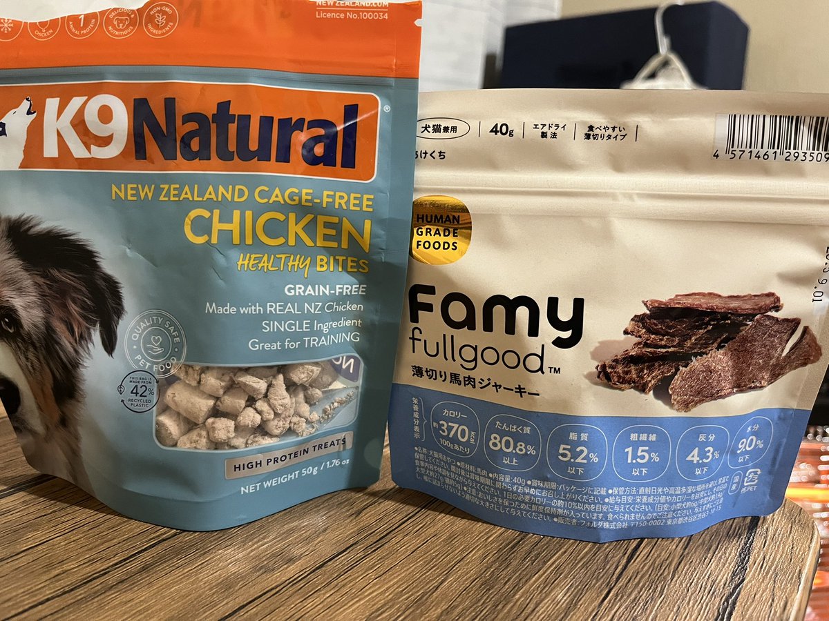 黒柴 こまち@gabugabu_koma@pets_base ウチはご飯の食べがイマイチなのでK9をふりかけ代わりに使用しています おやつはジビエのジャーキーで馬肉はAmazonで、今切らせてますが猪と鹿はいつも行くドッグランで購入しています