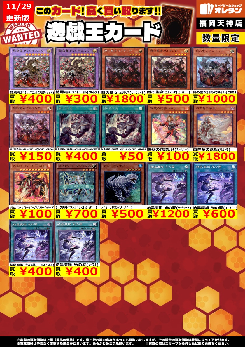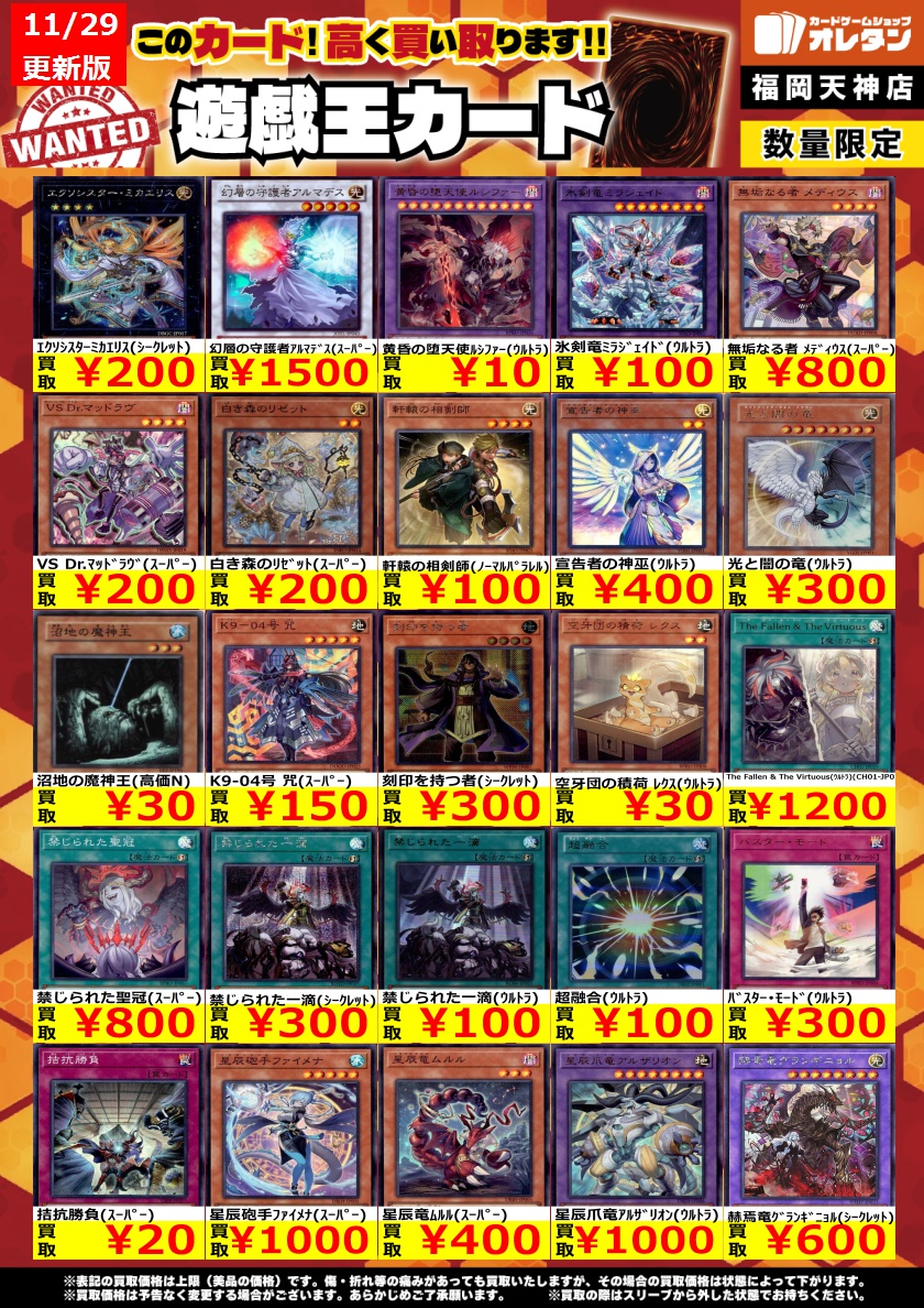 オレタン福岡天神店@card_strike【 #遊戯王 買取情報】 告知価格はカードの状態や在庫・市況に応じて変動します。 K9-04号 咒(スーパー) ¥150 耀聖の花詩ルキナ(スーパー) ¥100 無垢なる者 メディウス(スーパー) ¥800 #オレタン福岡天神店 #遊戯王 pic.x.com/LczUE8HSvc